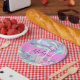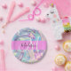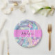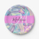 Mädchenrosa Holografisch Iridescent Monogram Name Pappteller