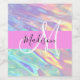 Mädchenrosa Holografisch Iridescent Monogram Name Weinetikett