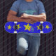 Niedlichen kleine gelbe Stars mit einer Blume füllten die Nummer 9 für das Skateboarddesign eines Mädchens. Eine ganz besondere Geschenkidee für das 9-jährige Gal, das Lieben zum Skate. Original Design von Anura Design Studio.