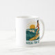 This retro-inspired surf art features a confident, classic pin-up surfing an endless wave beneath the shining sun. "Made For Waves" is written in teal vintage coastal font. Designed with old-school California energy, the distressed look gives it an authentic feel, like it was pulled straight from a vintage surf shop. This fun coffee mug is a perfect way to bring the beach home!