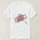Ein grunge-artiges Grafikdesign einer Alaska-Landkarte und ein gummier Briefmarke-Eindruck mit dem Text "Made in Alaska" von Künstlerin/Designerin Charmaine Paulson auf einem T - Shirt.
