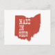 Die Form des Ohio-Staat mit dem roten Hintergrund und der in Ohio geschriebenen Nachricht Made in Ohio ist ein perfektes Postkartenbild, um Ohio-Freunden oder Familienmitgliedern eine handschriftliche Notiz zu schicken.
