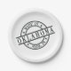 Mit einem schwarz-runden Briefmarke-Logo im Stil von Kautschuk mit den Worten "Made In" auf der Oberseite und unten von zwei Kreisen, die von schwarzen Sternen gebucht werden, und der Name des früher von Oklahoma übergehenden Staat macht diese Made in Oklahoma kreisförmigen Briefmarke Logo Papier Party Teller eine großartige Idee für jeden Oklahoman, der Essen für die Gäste in der schönen Schnalle Weizen Staat von Oklahoma serviert.