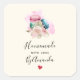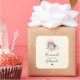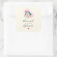 Aus Liebe personalisierte Aufkleber mit einem schönen Bild. 3 farbenfrohe Macarons, rosa, grün und blau, mit einem Blumenstrauß aus extravaganter Rose und einem Pink-Aquarell dahinter. Auch köstlich und stilvoll!