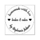 Einfache stilvolle Template Briefmarke für Ihre hausgemachten Kuchen, Backwaren, Brot, Cookies, Brot, Brot, Scheiben, Scheiben oder viele andere hausgemachte Goodies aus Liebe! Das kreisförmige Design zeichnet sich durch einen einfachen schwarzen Rahmen und ein Zwillingsdetails aus. Der Text in moderner minimalistischer Typografie kann leicht mit Ihrer eigenen Botschaft, Ihrem Namen oder Produkttyp für eine wirklich maßgeschneiderte und eine freundliche Briefmarke personalisiert werden!