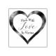 Diese benutzerdefinierte Briefmarke verfügt über einen Herzrahmen mit der Phrase Made with Liebe in the centre, gefolgt von einem Beispielnamen. Liebe ist in einem handgeschriebenen Schriftart.