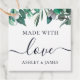 Dieses „Made with Love“ Geschenketikett mit weicher Eukalyptus-Botanik-Grafik fügt eine süße und durchdachte abschließende Note zu Geschenken, Leckereien und handgefertigten Geschenken hinzu. Das saubere, zeitlose Grün-Design macht es perfekt für Hochzeiten, Babypartys, Partys oder Dankeschön-Geschenke. Es ist entworfen, um perfekt mit der passenden Eukalyptus-Hochzeitspapeterie und Dekoration zu harmonieren, und fügt ein poliertes, herzliches Detail hinzu, das die Gäste zu schätzen wissen.