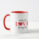 Text personalized typography script made with love for my wife funny cute quote red heart coffee mug.