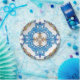 Ein blaues, grünes und gelbes Arabeskemuster mögen gesehen auf Mittelmeerfliesen