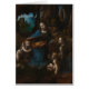 Leonardo da Vinci, der quintessenzielle Renaissancemann; Maler, Bildhauer, Erfinder, Anatomist und Visionär; war nicht nur ein Meister der künstlerischen Technik, sondern ein Genie, das die Kluft zwischen Kunst und Wissenschaft überbrückte. Geboren im Jahr 1452, führte seine unersättliche Neugier und sein Wissensdurst dazu, Leichen zu zerlegen, den Vogelflug zu studieren und Jahrhunderte vor ihrer Zeit von Flugmaschinen zu träumen. - Eines seiner faszinierendsten Werke, obwohl in einem Rätsel umhüllt, ist die zweite Version von "Madonna der Felsen". Es wurde um 1508 bemalt und befindet sich in der National Gallery, London. Inmitten der coolen Schatten einer Grotte entfaltet sich hier eine heilige Szene. — Die Jungfrau Maria, die in Saphirblau-Rändeln hineingezogen wurde, kniete in Ehrfurcht. Ihre heruntergekommenen Augen und ihr sanfter Ausdruck sprechen von stiller Hingabe und geben dem christlichen Kind, das sich in der Mitte versteckt hat, ein sanftes Licht. Der Junge Jesus, gebadet in diesem ätherischen Glühen, greift mit einer Geste des Segen zu seinem Cousin, Johannes dem Täufer. - John, ein einfacher Junge, kniet neben Jesus. In den rauen Fellen eines Tieres, einem kleinen Stab, der mit einem Kreuz überragt ist, der locker in der Hand gehalten wird, schaut er Jesus mit einem wissenden Blick hinauf. Seine andere Hand bietet eine Schüssel mit klarem Wasser, ein subtiler Hinweis auf die Rolle, die er in der Zukunft spielen wird. — Hinter John kniet eine Engelfigur, ihre Gegenwart ein Flüstern des Göttlichen. Der Engel verkleidet in lebendiger Grimson und smaragdgrünen Roben, Gesten gegenüber Johannes und schafft ein leises Gespräch zwischen den Figuren. Vielleicht sind sie Wächter und achten auf diese heiligen Kinder, die ihrer Pflege anvertraut wurden. — Die Luft hängt schwer mit einer anderen Gelassenheit. Das Sonnenlicht filtert durch unsichtbare Risse in den Felsklippen, die die Kulisse bilden, und beleuchtet eine Welt üppiger Pflanze und cooler Grottenbäder. Die Szene ist eine ruhige Betrachtung, ein zarter Moment, der in der Zeit zwischen diesen heiligen Figuren ausgesetzt ist. Obwohl die Interpretationen variieren können, ist eines sicher: Leonardo da Vincis "Madonna der Felsen" ist eine fesselnde Darstellung von Glauben, Unschuld und den heiligen Bindungen, die die Menschheit an das Göttliche Krawatte haben.