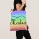 Das italienische Wort für Mutter ist verrückt. Geschehen in schwarzer Schrift und in der Mitte eines Herzens getuckt und auf einem Regenbogen bedruckten Totbeutel