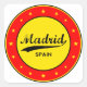 Abzeichen von Madrid mit spanischer Flagge, abgerundete Form. Emblem des Madrid Designs. Siegel Madrid España.