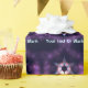 Ein folienartiger, mehrfarbiger Fraktal Star of David auf dunkelblauem Hintergrund.