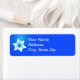 Mit einem weißen Fraktal Star of David auf blauem Hintergrund. Das gleiche Design findet man auf Einladungen und Karten.