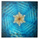 Ein blauer und gelber Fraktal Star of David auf einem dunklen Hintergrund. Fügen Sie Ihren eigenen Text hinzu.