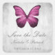 Elegante und einfache Hochzeit Speichern Sie die Date Stickers mit einem Magenta Butterfly vor grauem Grunge Hintergrund. Dieses Design ist eine einzigartige Wahl für die Ankündigung einer modernen Hochzeit. Einfach an Ihre Hochzeitsdetails anpassen. Klicken Sie auf "Anpassen", um weitere Personalisierungsoptionen zu erhalten.