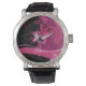 Uhr, Klassische Damenuhr mit schwarzen Lederarmband