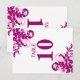 © 2012 Sozialite Designs. Unsere eleganten, doppelseitigen Magenta-blüh-Tischnummern-Karten sind eine perfekte Ergänzung zu Ihrer Hochzeit oder einem besonderen Ereignis. Ersetzen Sie einfach die Nummer auf der Karte für jeden Tisch.