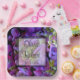 Magenta Lila-blaugelbe Hydrangeas-Blume Pappteller