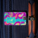 Identifizieren Sie Ihr Gepäck, Ihren Rucksack oder Ihre Computertasche mit diesem lustigen und stilvollen Gepäckanhänger. Sie werden dieses farbenfrohe Gepäckanhänger mit einem whimsy paisley Design personalisiert mit Ihrem Monogramm, Initialen oder Namen und Ihre Kontaktinformationen auf der Rückseite hinzufügen. Die kühnen Farben dieses angesagten Paisley-Designs zeichnen sich durch einen magenta-lila Hintergrund mit einem türkisfarbenen aquamarinen blauen Streifen und einem Emblem für die Personalisierung aus. Helle, frische, moderne Paisleys bilden ein wunderschönes künstlerisches Design, das inspirierende Worte von Liebe, Hoffnung, Glauben, Inspirier, Tschechisch, Be Happy, Dream, und Live im Hintergrund zwischen den Paisleys beinhaltet. Diese von Phyllis Dobbs entworfene Kollektion Mod Paisley verwendet die Farbtöne aquamarin, türkisblau, Limettengrün, Wein, Gelb, Fuchsien und Orange, um das traditionelle und beliebte Paisleymotiv zu genießen. Das Paisleymotiv ist zeitlos ansprechend, aber diese originelle Kunst ist zeitgenössisch und zugleich modern. Vollständig anpassbar für Personalisierung mit eigenen Worten, um Ihre eigene Nachricht hinzuzufügen.