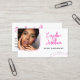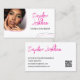 Minimalistische Foto Visitenkarte mit Retrolinien in magenta und schwarz auf weißem Hintergrund und Ihr Name in einem groben Signaturskript. Personalisieren Sie mit Ihrem Foto und einem QR-Code. Einflussreiche QR-Code Visitenkarte in Weiß mit Magenta Details und Ihr Foto.