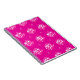 This notebook features a vivid magenta background decorated with soft white and blush‑pink circular dot clusters, creating a dynamic, contemporary geometric motif.