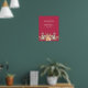 Hübsches, modernes und einfaches Hochzeitskoppel-Poster mit tiefblühendem Spray in Aquarellfarbe mit pfirsichfarbenen Blume und verschiedenen Salbei- und Eukalyptus-grünen Blätter auf trendigem Viva Magenta-Hintergrund. Pärchenname und Hochzeitsdatum in modernen Schriftart in Weiß anpassen