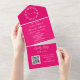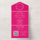 Magenta pink, fuchsia, elegant, rustikal, moderne gefaltete Ehe, QR-Code Hochzeit alle in einer Einladung. Das dreifache, budgetäre Set. Sie können es mit Ihren eigenen Daten personalisiert.