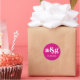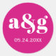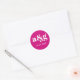 Magenta rosa einfache und elegante monogramm Hochzeitsaufkleber. Es zeigt Ihren Anfang und das Datum Ihrer Hochzeit in weiß auf heißen rosa Hintergrund.