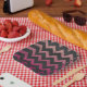 Magenta rosa Ober dunkelgrau Zickzack Muster Pappteller