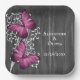 Fügen Sie eine Touch rustikaler Romantik zu Ihrem Fest mit diesem wunderschönen Magenta Rustic Butterfly Wedding Paper Plate. Mit einem anmutigen rustikalen Schmetterling und eleganten weißen botanischen Akzenten ist das Design Set vor einem weichen, grau verwitterten Holzboden für diesen rustikalen Charme. Personalisiert mit den Namen der Braut und des Bräutigams und dem Hochzeitsdatum, ist die moderne und zeitlose Typografie eine Krawatte mit raffinierter Eleganz. Ideal für Schmetterlingssendungen, Empfänge im Garten oder lässige Hochzeitsfeiern. Dieser Teller vereint Schönheit und Praxisnähe - eine einfache Reinigung, während Sie Ihre Veranstaltung stilvoll behalte. Eine schöne Ergänzung zu Ihrem kompletten Hochzeitsfest bietet Set, vor allem für Empfänge, Brautpartys oder Proben-Dinner mit einem rustikalen Hintergrund aus Holz.