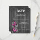 Schicken Sie Ihren Gästen eine einfache und elegante Magenta Rustic Butterfly Wedding RSVP Card mit Ihrer Einladung. Das Design der RSVP-Karte zeichnet sich durch ein Paar lebendiger Schmetterlinge aus weißer, grüner Weinrebe und rustikalem Holzhintergrund aus. Personalisieren Sie Ihre Einstellungen mit dem Datum der Antwort und den Menüoptionen. Mit diesem Design sind auch weitere Hochzeitswaren erhältlich.