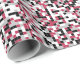 Dieses Verpackungspapier zeichnet sich durch ein farbenfrohes geometrisches Muster in der trendigen Viva Magenta aus, schwarz, grau und weiß, mit weißem Gitter. Die Quadrate sind in einem zufälligen Muster gefärbt und Sie können die Farben im Design-Tool bearbeiten.