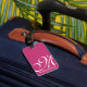 Gepäckstück mit Lederband nach Maß: großes Skript-Monogramm und Name