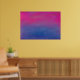 Abstraktes Design mit einem weichen, traumhaft rosa Magentahimmel und einem lila blauen Meer. Eine sanfte Farbkombination, die eine impressionistische Fantasielandschaft schafft.