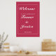 Hübsches, modernes, minimalistisches und trendiges Hochzeitsempfangsposter mit Magenta-Hintergrund und weißen, anpassbaren Textblöcken in modernen Schriftart