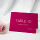 Diese kühlen und modernen magentafarbenen Hochzeitsfeiern bieten die Möglichkeit, Tischnummer, Gastname und die Wahl des Essens einzubeziehen. Diese Karten müssen gefaltet werden, um für jeden Gast die Zelt-Platzkarte zu erstellen.