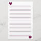 Dieses gezeichnete Briefpapier ist für Valentines perfekt und für jederzeit das würden Sie wollen, um irgendeine Liebe zu senden. Es kennzeichnet eine Malerei eines Spitzeherzens, das in Magentarotem erfolgt ist, violett, das zu Beginn der Linien und einer anderen am Ende gezeigt wird. Die Linien sind auch eine ähnliche Farbe.