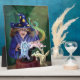 Wenn Sie Magie in der Liebe haben, werden Sie dieses lustige Magic Act-Gemälde Liebe finden, Magic ist reich an diesem skurrilen Kunstwerk, das unser talentierter Kinderillustrator Traci Van Wagoner digital gemalt hat. Er zeigt eine Zauberkünstlerin, die ein blaues Gewand und einen blauen Hut mit Sternen und Monden trägt und mit ihrer Zauberwand drei mehrfarbige Kaninchen aus einem schwarzen Hut zieht.