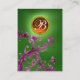 Elegant, skurril, fuchsia, violet.Wirbel, Schnörkel, Blüten und Blüten im Frühling mit einem leuchtenden 3D-smaragdgrünen Edelstein.Original Aquarellmalerei und 3D-Grafik von Baldesign3D (c..).. Leicht mit Ihren Initialen und eigenen Text als allzweckgebundene Visitenkarte zu gestalten, um jedes Geschäft zu machen! .