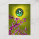 Elegant, skurril, fuchsia, violet.Wirbel, Schnörkel, Blüten und Blüten im Frühling mit einem leuchtenden 3D-smaragdgrünen Edelstein.Original Aquarellmalerei und 3D-Grafik von Baldesign3D (c..).. Leicht mit Ihren Initialen und eigenen Text als allzweckgebundene Visitenkarte zu gestalten, um jedes Geschäft zu machen! .