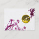 Elegant, skurril, fuchsia, violet.Wirbel, Schnörkel, Blüten und Blüten im Frühling mit einem leuchtenden 3D-smaragdgrünen Edelstein.Original Aquarellmalerei und 3D-Grafik von Baldesign3D (c..).. Leicht mit Ihren Initialen und eigenen Text als allzweckgebundene Visitenkarte zu gestalten, um jedes Geschäft zu machen! .