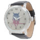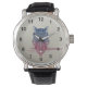 Uhr, Klassische Damenuhr mit schwarzen Lederarmband