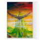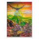Farbenfrohe und lebendige Acrylmalerei in den Farben Grün, Orange, Gelb, lila, Rot, Braun, Weiß 2009, Duel zwischen Bradamant und Negromancer auf seinem Griphon mit riesigen Flügeln. Orlando Furioso, Canto 2, geschrieben von dem italienischen Renaissance-Dichter Ludovico Ariosto 1516 .