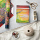 Farbenfrohe und lebendige Acrylmalerei in den Farben Grün, Orange, Gelb, lila, Rot, Braun, Weiß 2009, Duel zwischen Bradamant und Negromancer auf seinem Griphon mit riesigen Flügeln. Orlando Furioso, Canto 2, geschrieben von dem italienischen Renaissance-Dichter Ludovico Ariosto 1516 .