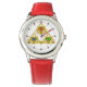 Kinderuhr aus Edelstahl mit rotem Lederarmband