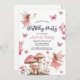 Ein schönes Design mit einem magischen Land von Feen, Pilzen, Blume und Schmetterlingen + elegante Kalligraphie ! Sie können diese Einladung mit Ihren eigenen Daten personalisieren.