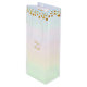 Schöner magischer Moment und goldene Polka Punkte auf pastellfarbenen Farbverlauf Wein Geschenktasche. Magic Moment Text kann angepasst werden. Vergessen wir immer, dass jeder Moment für uns ein magisches Erlebnis ist!