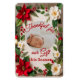 Celebrate the joy of the season with this beautifully designed Folded photo magnet, perfect for sharing your family's newest blessing. The front features a festive floral border of red poinsettias, white blossoms, pine sprigs, and berries, framing a soft cream-colored space where a photo of your baby brings the card to life. The words 'Thankful for our gift this Season' appear below the image, expressing heartfelt gratitude.