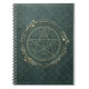 Ein magisches Grimoire-Notizbuch-Design mit einem Gel, geheimnisvollen Symbolen, Runen und Ornamenten.